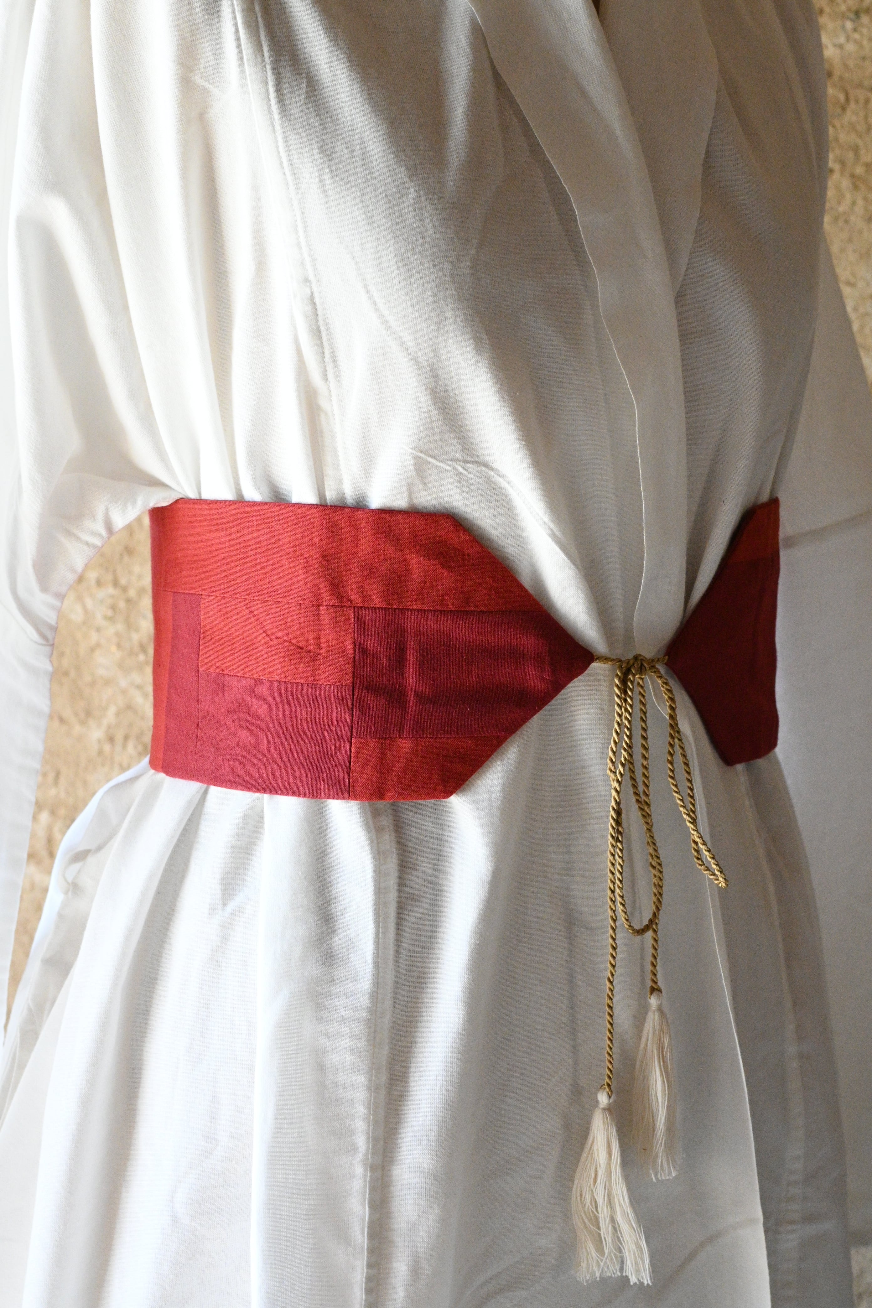 小さなハギレたちを繋ぎあわせた帯.